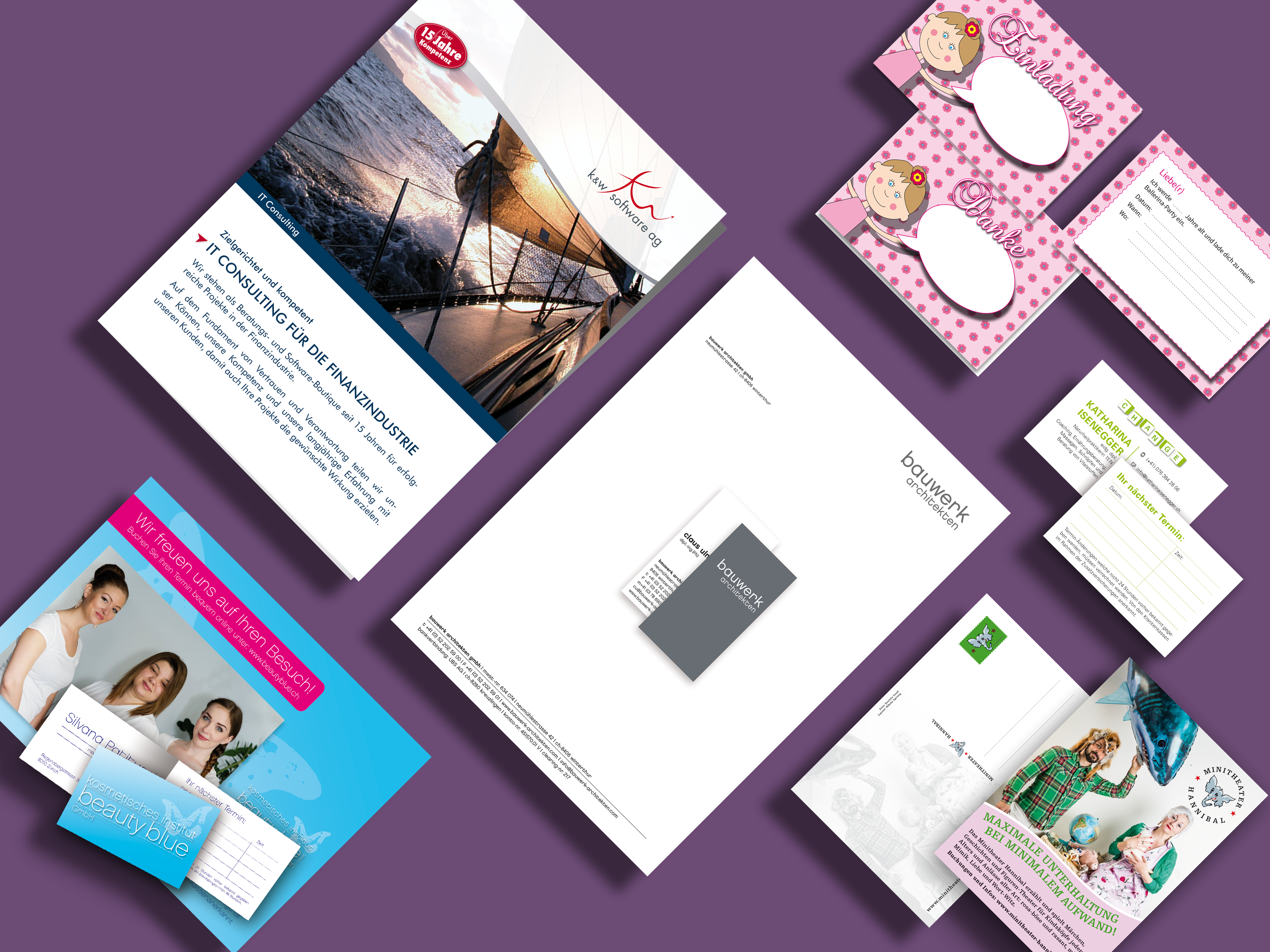 Sie benötigen einen neuen Firmenauftritt, Webseite, Flyer, Visitenkarten etc.? Ich unterstütze Sie gerne zu fairen Preisen, schnell, freundlich und unkompliziert von Layout bis zur Produktion.